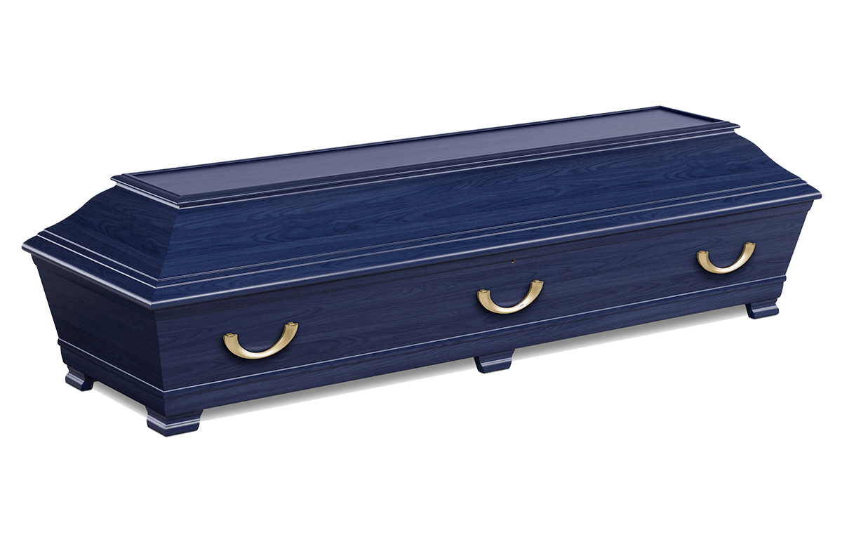 Azur, en kista som inspireras av himlens och havets fridfulla blå nyanser, erbjuder en elegant och värdig sista vila. Den stilrena designen med vackra mässingsfärgade handtag skapar en tidlös elegans som passar perfekt för att hedra den avlidnes minne.